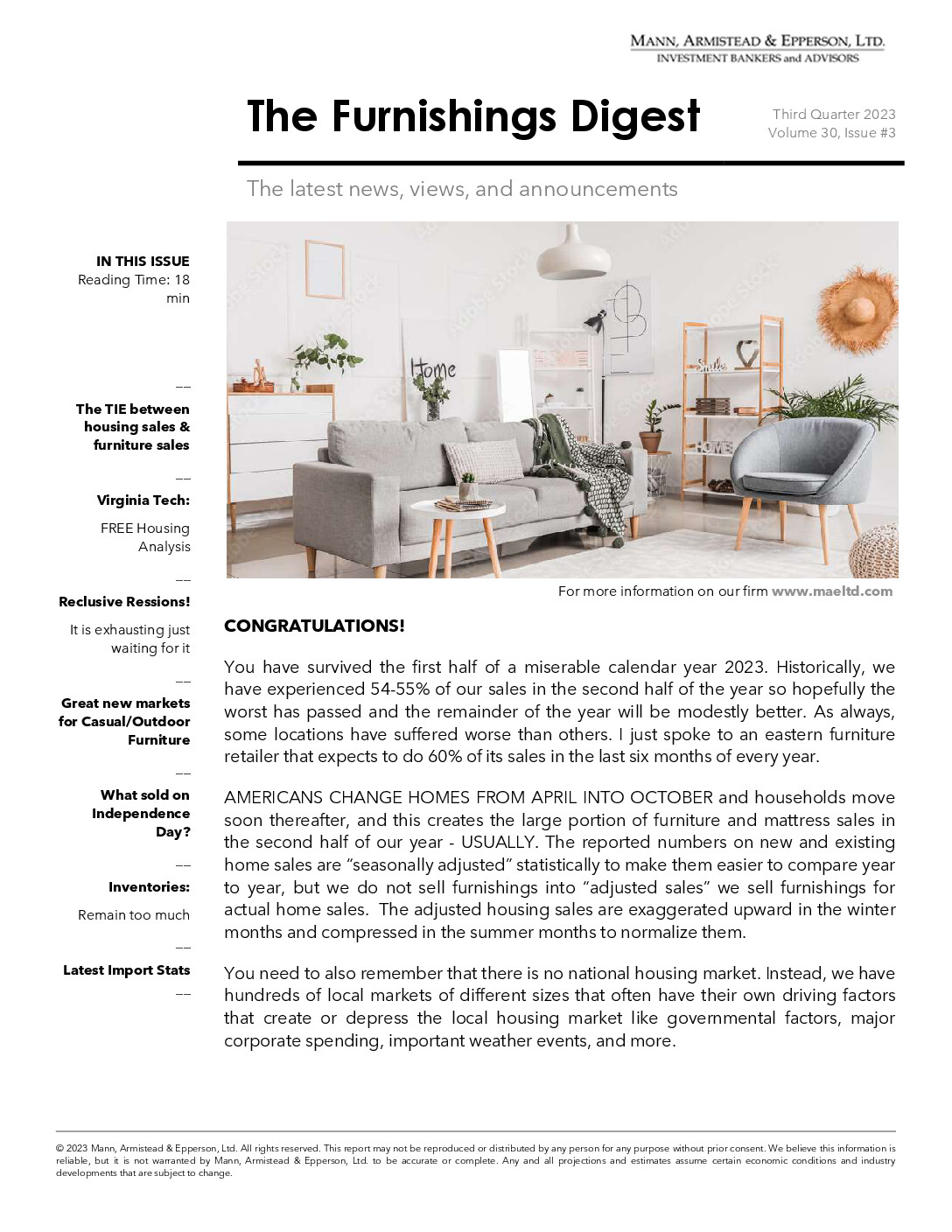 Read the MAE Q3 2023 Furnishings Digest. Covered in this edition are: